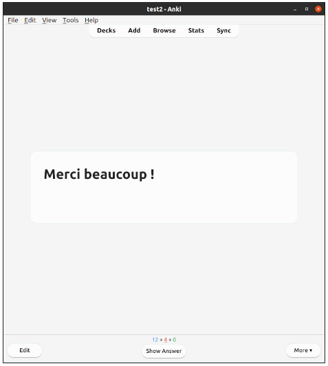 This deck allows you to consolidate your basic French vocabulary. It starts with very common phrases, and each new note introduces words that have not yet been covered. By clicking on a sentence, you can access similar examples and their translations.